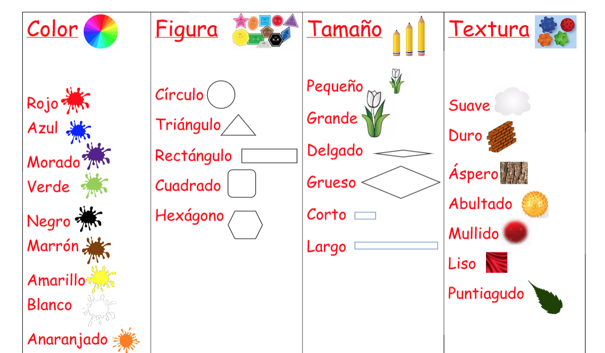 las propiedades de color, figura, tamaño y textura.